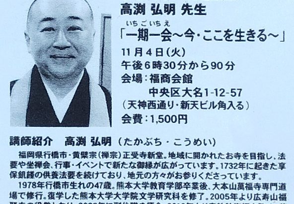11月4日(火) 副住職 髙渕弘明 「南無の会」法話案内